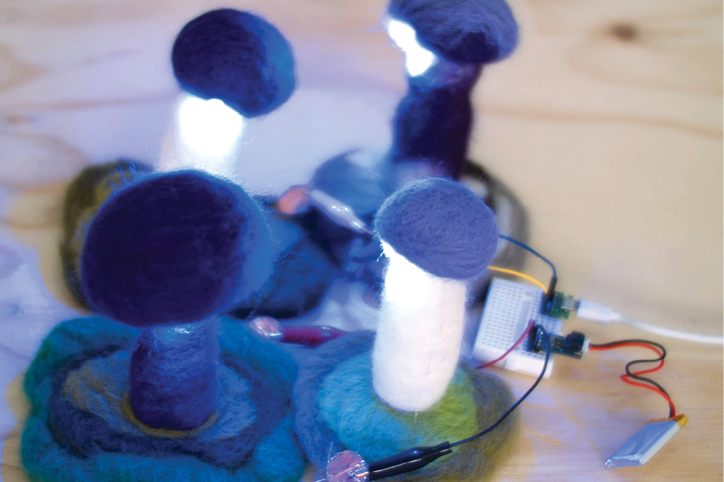 En este proyecto, le mostramos cómo crear un hongo fantástico de fieltro electrónico, una escultura de textil electrónico que involucra fieltro de aguja y electrónica. El proyecto explora deliberadamente un enfoque lento y contemplativo de la creación que tiene en cuenta el ciclo de vida y la sostenibilidad de los materiales. Al fieltrar lana suave para crear una forma fantástica que se ilumina, podemos calmar la mente, fomentar la atención plena y expresar sentimientos de afecto y conectividad con nuestras comunidades y el entorno natural.