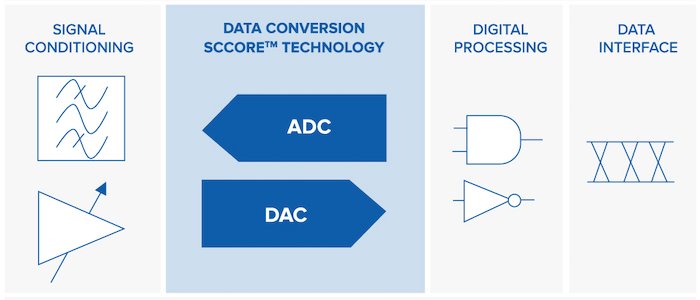 El uso de su propia tecnología también permite a SCALINX producir ASIC de conversión de señal con alto rendimiento de ruido utilizando arquitecturas de múltiples bits de baja potencia, recuperación instantánea de sobrecarga y un alto grado de flexibilidad de una arquitectura digital dominante. Los bloques IP de conversión de señal ADC y DAC de la empresa también se basan en esta tecnología patentada SCCORE.