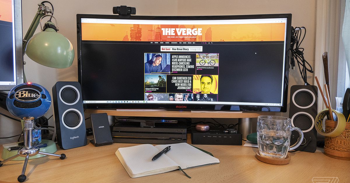 Debo confesar que no es así como tendría las cosas configuradas si tuviera la opción. Mi monitor principal es un ultraancho AOC AG352UCG 1440p que normalmente estaría fuera de mi rango de precio, pero obtuve un trato porque está un poco … bueno … roto. Su DisplayPort funciona perfectamente y es compatible con G-Sync para mantener los juegos funcionando sin problemas, pero desafortunadamente el puerto HDMI parece estar roto, por lo que no puedo usarlo con la PS4 Pro que tengo debajo.