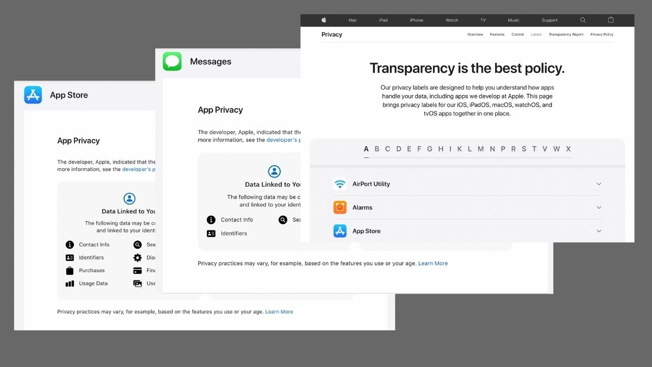 Con esto, Apple enfatiza que la etiqueta de privacidad de ninguna de sus aplicaciones tendría “Datos usados para rastrearlo”. A otros desarrolladores se les permite "rastrear usuarios" si obtienen permiso del usuario para hacerlo. Esto será obligatorio según el marco de Transparencia de seguimiento de aplicaciones que se aplicará con iOS 14.5.