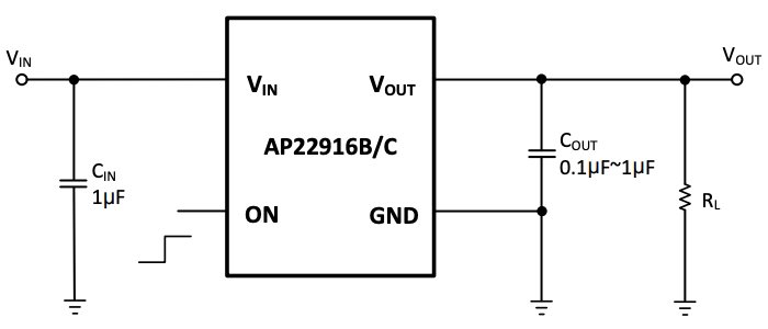 Circuito de aplicación típico del AP22916. Imagen utilizada por cortesía de Diodes Incorporated