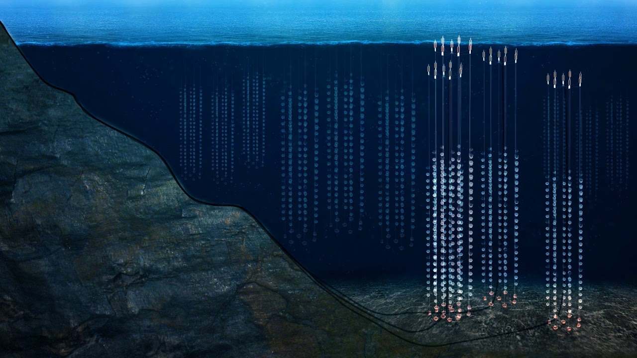 Un orbe de vidrio, del tamaño de una pelota de playa, cae en un agujero en el hielo y desciende sobre un cable de metal hacia el fondo del lago más profundo del mundo. Luego otro y otro. Estos orbes de detección de luz se detienen suspendidos en las profundidades oscuras hasta 4.000 pies por debajo de la superficie. El cable que los lleva contiene 36 orbes de este tipo, espaciados 50 pies entre sí. Hay 64 cables de este tipo, sostenidos en su lugar por anclas y boyas, a 2 millas de la costa sur irregular de este lago en Siberia con un fondo de más de 1 milla hacia abajo.