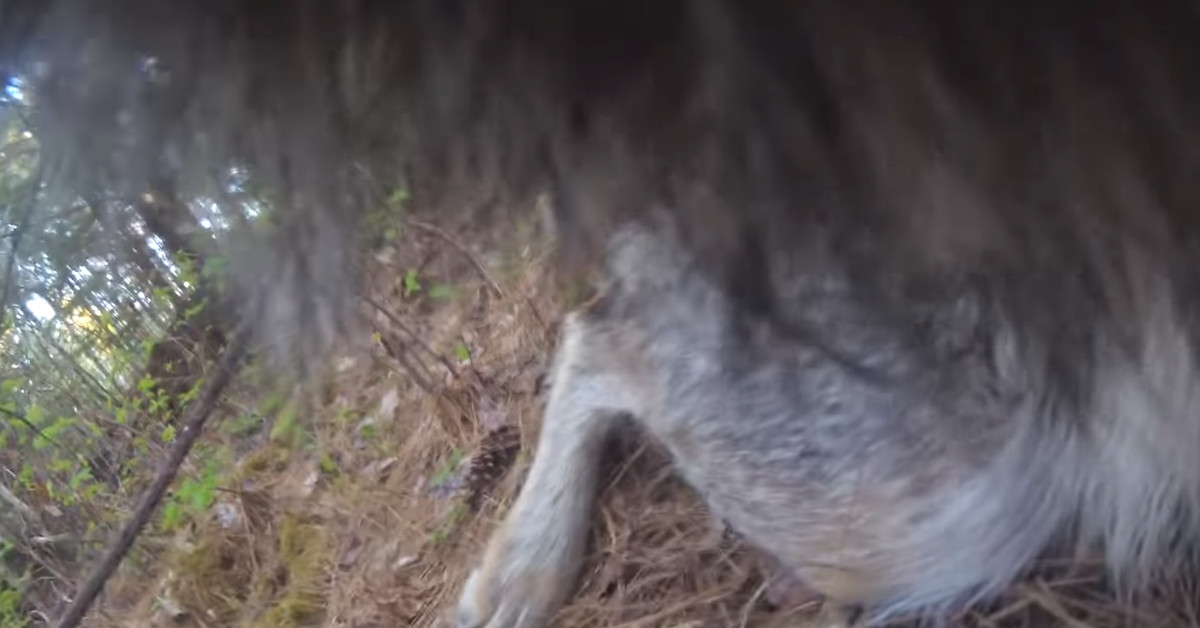 Los investigadores del proyecto atraparon a V089, un lobo solitario, lo sedaron y luego le sujetaron el collar de la cámara Vectronic-Aerospace. El collar grabó video en ráfagas de 30 segundos durante las horas del día, por un total de 7 minutos al día.