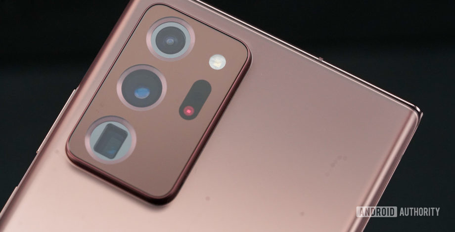 Las combinaciones de colores reflectantes y similares al espejo del Note 10 se han ido, después de haber sido reemplazadas por Mystic Black, Mystic White y Mystic Bronze, el último de los cuales se parece sorprendentemente al oro rosa si me preguntas. Me gusta mucho el aspecto satinado y el tacto de los modelos blanco y bronce. El acabado de alta calidad evita las huellas dactilares y otras marcas con facilidad. Hay dos cambios importantes en partes menores del diseño: los botones de encendido y volumen se han restaurado en el lado correcto del teléfono y el S Pen se ha reubicado. En un error de diseño el año pasado, Samsung colocó el botón de encendido / bloqueo de pantalla en el borde izquierdo del teléfono. Para cualquiera que venga de un Note 8 o Note 9, el botón estaba repentinamente en el lado opuesto del teléfono. Ahora, tanto el interruptor de volumen como el botón de encendido están en el borde derecho, donde la mayoría de las personas pueden encontrarlos fácilmente. La respuesta de estas teclas es impecable. Curiosamente, Samsung movió el S Pen de su ubicación tradicional en la esquina inferior derecha a la esquina inferior izquierda. Solo podemos suponer que Samsung hizo este cambio para acomodar el módulo de la cámara. Hablando de que…Crédito: Eric Zeman / Autoridad de Android Samsung presentó el módulo giganto con la serie S20 en febrero. Es grande para dejar espacio para la cámara con zoom de periscopio. Ese módulo ahora ha llegado a la serie Note. Es una cosa grande y molesta que no me gusta particularmente como se ve. Es lo suficientemente grande como para quedar atrapado en los bolsillos al guardar el teléfono y puede interferir con la carga inalámbrica en algunas alfombrillas de carga.
