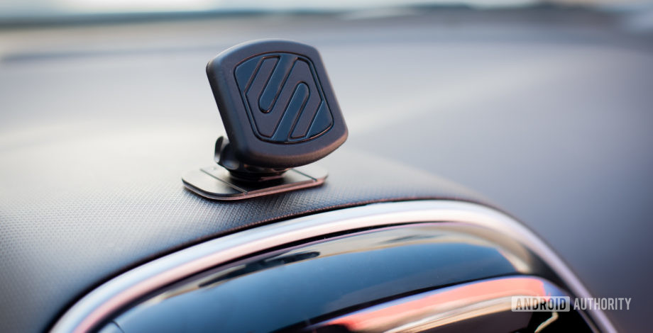 La placa posterior está hecha de goma, lo que no afecta a los costosos dispositivos electrónicos. Agregar la película protectora que va entre la placa y su teléfono inteligente también es un buen toque. Esto hace que sea más sencillo desinstalar la placa de metal siempre que desee cambiar de teléfono (o soportes). La construcción es muy simple. Hay una rótula de bola única que permite ajustar el ángulo. También obtiene un clip conveniente en la placa posterior para la gestión de cables. También me gustó que la sección que se adhiere a la superficie de su automóvil tiene ranuras que le dan un poco de curvatura. Debido a esto, el Scosche MagicMount Dash se amoldará mejor al área de la superficie a la que está unido, incluso si es un tablero curvo. Además, esto facilita la instalación del soporte en otro lugar que no sea el tablero. Esta es una consideración importante ya que la colocación incorrecta de un soporte frente a su parabrisas podría ser peligrosa y, en algunos casos, es ilegal (consulte las leyes locales).Crédito: Edgar Cervantes / Autoridad de Android Seré el primero en decir que una vez que te vuelves magnético, realmente no puedes volver atrás. La falta de mecánica no solo hace que el soporte parezca más discreto, sino que usar fuerzas magnéticas es mucho más simple que los soportes estándar para teléfonos de automóviles. Me encanta poder saltar dentro y fuera del coche y simplemente dejar caer o sacar mi teléfono del soporte. En cuanto a la fuerza del imán, me sorprendió la capacidad del diminuto Scosche MagicMount Dash para quitar el teléfono de mi mano. También lo sostiene firmemente, ya que la superficie de goma parece que casi se pega a su teléfono inteligente. Lo probé con un Pixel 3 XL y un Samsung Galaxy S10 Plus; ni una sola vez sentí que se estaban moviendo o cerca de resbalar.Más: Las mejores aplicaciones de coche para tu teléfono Android