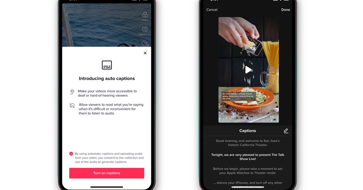 Los creadores de TikTok pronto podrán agregar subtítulos generados automáticamente a sus videos a medida que la aplicación intente hacerse más accesible. La opción para agregar subtítulos automáticos aparecerá en la página de edición después de que se haya cargado o grabado un video. TikTok dice que la función estará disponible en inglés americano y japonés al principio, pero que planea agregar soporte para más idiomas "en los próximos meses".