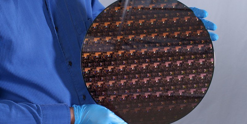 Un primer plano de la nueva oblea de 2 nm. Imagen de IBM