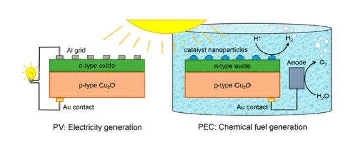 Imagen de conversión de energía solar con óxido cuproso. Imagen utilizada por cortesía de Wick y Tilley.