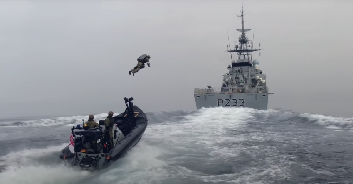 La Royal Navy británica aparentemente ha estado probando el uso de trajes jet para abordar barcos como una escena de una película desechada de Christopher Nolan, según un nuevo video publicado por Gravity Industries, con sede en Reino Unido. Business Insider escribe que las pruebas se llevaron a cabo durante tres días en el HMS Tamar, un barco de patrulla costa afuera de la clase Royal Navy Batch 2 River.