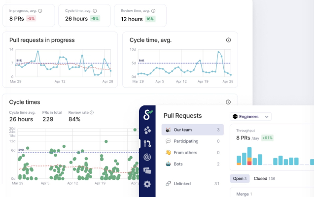 Swarmia se integra con herramientas de desarrollo como GitHub, Jira, Linear y varias herramientas de CI para "crear una visión holística del funcionamiento interno de los equipos de ingeniería".