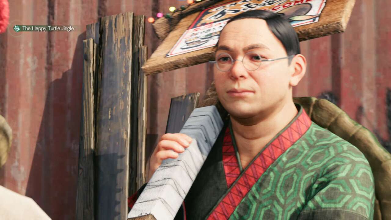 Haga clic en la imagen de arriba para ver más de cerca cada captura de pantalla.En el punto más al sur del área residencial (donde vive Wedge), encontrará a algunos niños maravillados con un globo de tortuga flotando en el aire que tiene un volante adjunto. No puede hacer estallar el globo con su kunai desde donde están parados, por lo que deberá encontrar un mejor punto de vista. Pase a los niños y salte sobre las cajas para llegar justo al lado del globo sin obstrucciones en el camino. Míralo y presiona el triángulo para lanzar tu kunai. El volante debe caer al suelo cercano.