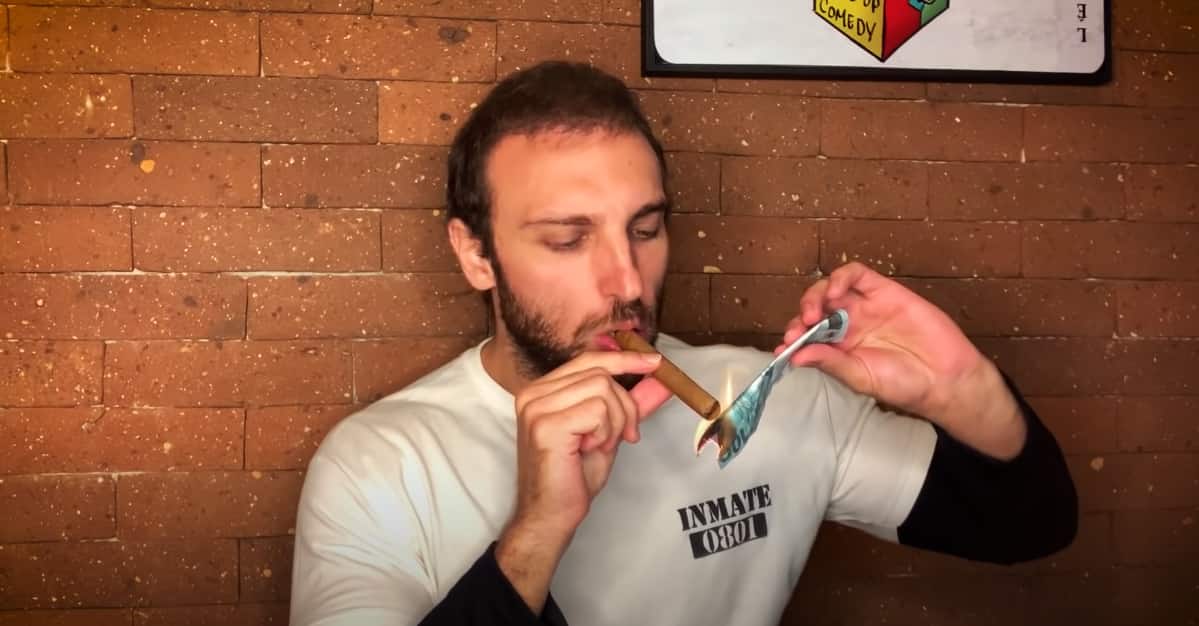 En el video “× ͜ × – Me condenaron a pagar 15 mil por uno”, en el que Léo explica los motivos de la condena en la ciudad de Jacareí, el comediante toma un puro cubano y lo enciende en un billete aparentemente falso de R $ 100,00. .