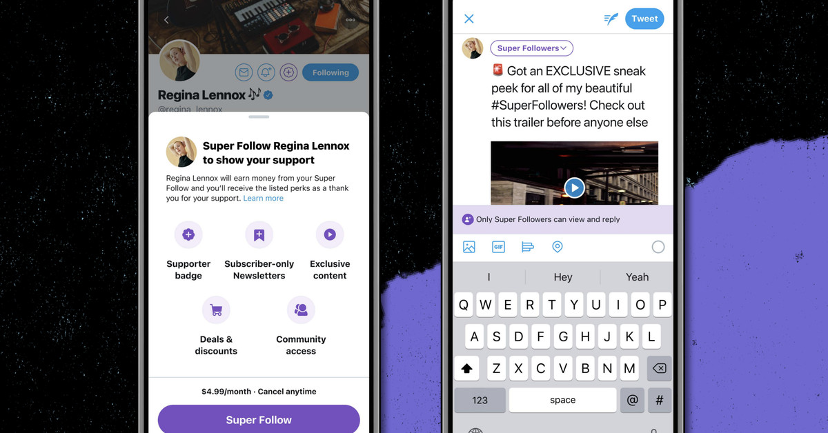 Twitter se negó a comentar sobre la última investigación de Wong el domingo. Pero anteriormente describió la función de Super Follows similar a Patreon como una especie de suscripción, proporcionando un ejemplo en el que un usuario de Super Follows cobraba $ 4,99 por mes para que los usuarios tuvieran acceso a "beneficios".