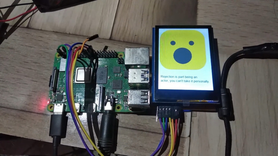 En Castaway, Tom Hanks no puso cara de mal humor a esa pelota de voleibol, ¿verdad? Tampoco tiene una sonrisa tonta. En cambio, tiene una sonrisa irónica que sugiere profundidad de carácter y una comprensión de la terrible situación que se avecina. Pero ahora tenemos emoji, y hacen un buen trabajo transmitiendo y evocando emociones. EMOJO es un chatbot visual que utiliza voz y emoji para facilitar una conversación bidireccional para ayudar a ahuyentar la soledad. Utiliza una Raspberry Pi y una pantalla TFT para tomar la entrada de voz de un auricular Bluetooth, convertirla en texto y luego responder de la misma manera con voz y texto. Fue finalista en la ronda de repensar exhibiciones del Premio Hackaday, y estamos ansiosos por ver cómo se desarrolla su carácter. Asegúrese de ver la demostración después del descanso.
