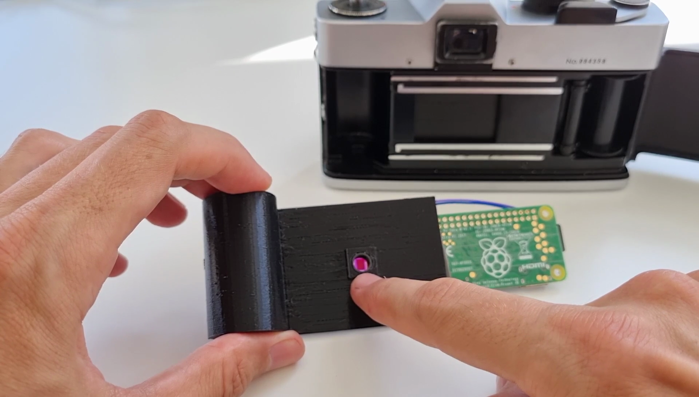El último proyecto de [befinitiv] maneja esta conversión intercambiando una Raspberry Pi Zero donde, de lo contrario, el cartucho de película se insertaría en la cámara. El Pi está conectado a una carcasa impresa en 3D que imita la forma de la película y también alberga una cámara Pi justo en frente del lugar donde se expondría la película. Al quitar la lente de la cámara Pi, esta nueva configuración puede aprovechar la óptica de la cámara analógica y puede capturar imágenes de calidad relativamente decente.
