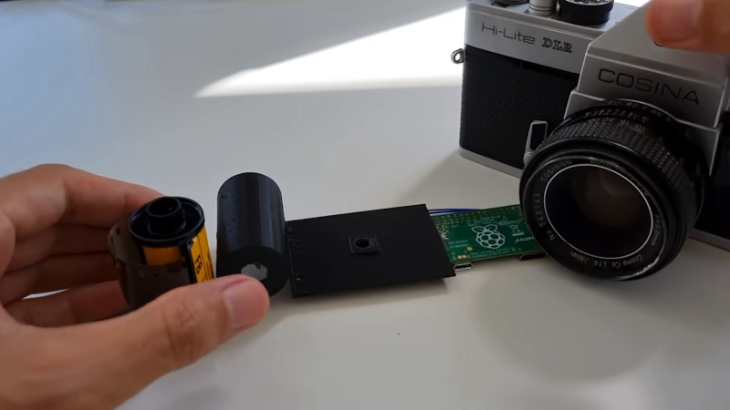 Si querías una cámara de película cara cuando eras niño, estás de suerte. Las SLR de película usadas son súper baratas ahora que todo el mundo quiere cámaras digitales. Por supuesto, en realidad, también desea una cámara digital. Entonces haz lo que (befinitiv) hizo. Hacer una cartucho de película de una Raspberry Pi que puede convertir su cámara a digital. (Video, incrustado a continuación).