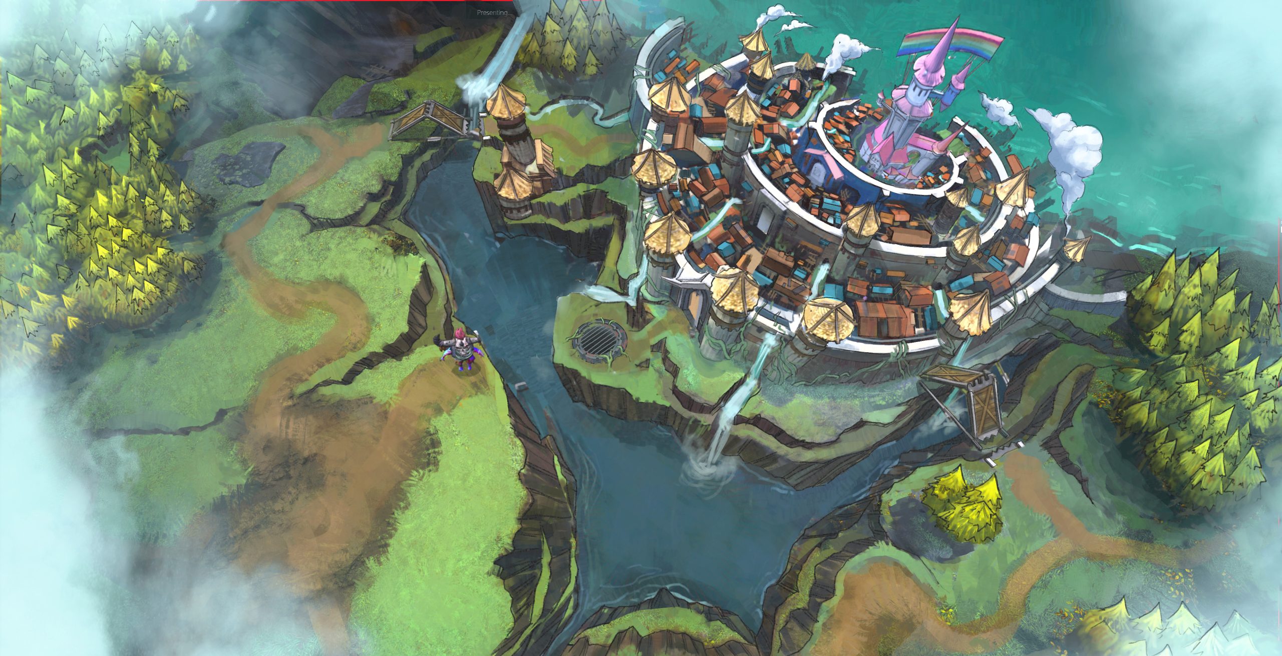 Los tres dejaron en claro su deseo de traducir el bucle de juego de saqueadores y disparos de Borderlands a una estructura nostálgica similar a un juego de rol, con las secciones de disparos repartidas en un mapa mundial explorable que recuerda a Dragon Quest o Final Fantasy. Querían establecer un contraste real entre los niveles de tiroteos más familiares y el supramundo. Conseguir el ambiente correcto fue de gran importancia para Gearbox: el estudio experimentó con múltiples estilos de arte, incluido un enfoque de acuarela y una perspectiva que suena genial que, desafortunadamente, resultó en algunos problemas de usabilidad, según Cox.