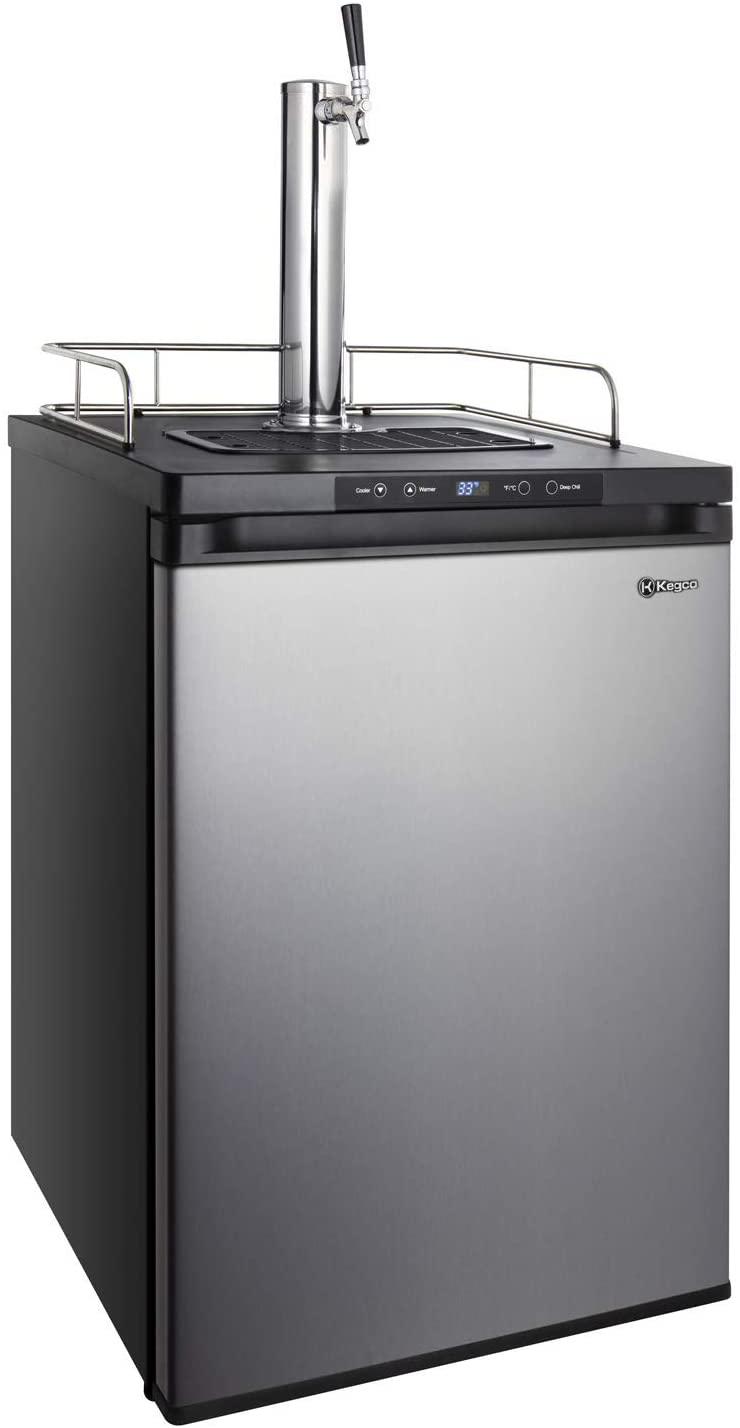 Si bien hay muchos kegerators más pequeños, el K309SS-1 es perfecto para albergar un barril de tamaño completo o barriles de tamaño 3 1/6. Si no tiene ninguno a mano, también se puede convertir rápidamente en un refrigerador de dos estantes para todo su vino y cerveza. El Kegco también tiene uno de los sistemas de enfriamiento más rápidos que existen, lo que significa que puede hacer que su barril alcance la temperatura para beber muy rápido.