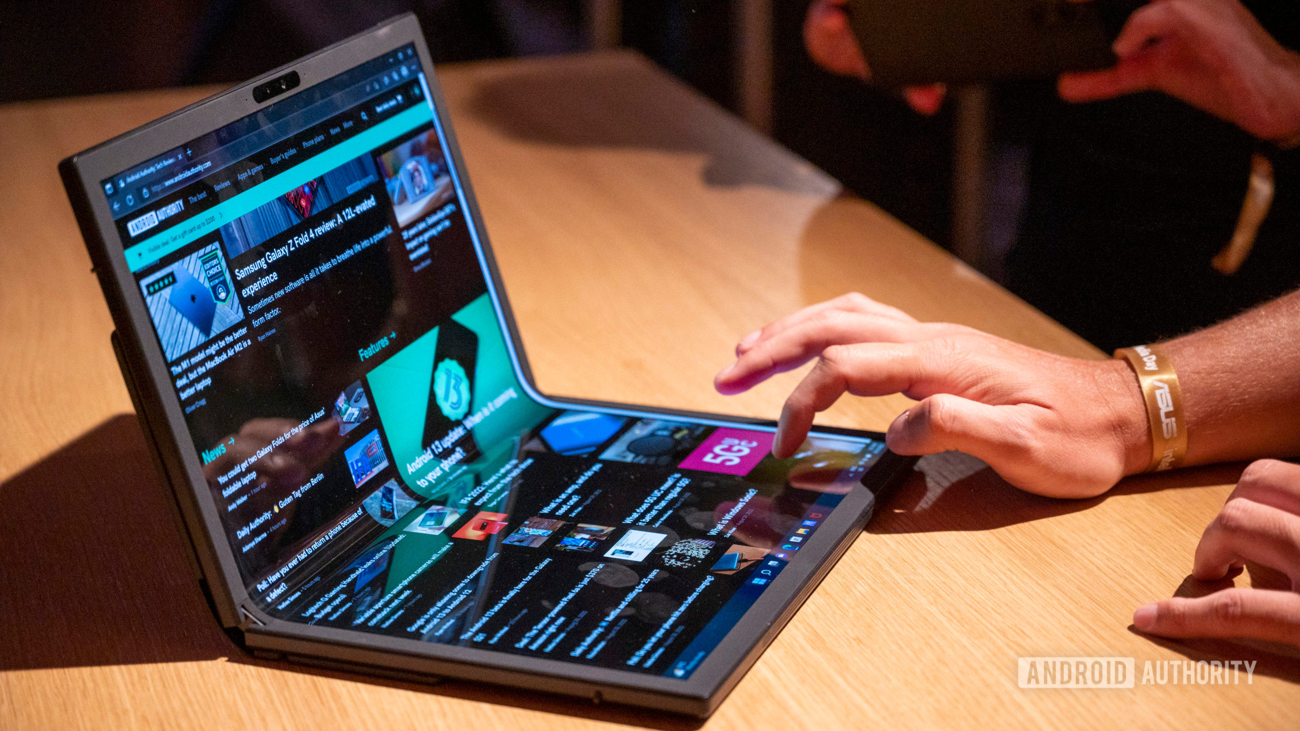 Ryan McLeod / Android AuthorityDoble la pantalla hacia abajo y obtendrá una computadora portátil compacta de 12,5 pulgadas. Puede colocar el teclado inalámbrico incluido en la parte superior de la mitad inferior de la pantalla. El dispositivo lo detecta y adapta la interfaz de usuario para usar solo la mitad superior de la pantalla. En este modo, el Zenbook 17 Fold OLED se comporta como un pequeño portátil normal. Alternativamente, puede usar el dispositivo en modo de pantalla táctil. El contenido simplemente “fluye” desde la mitad vertical de la pantalla a la mitad horizontal. Puede abrir un teclado virtual para escribir, o puede desplazarse por documentos y páginas web en las dos mitades de la pantalla. Personalmente, encontré este modo torpe, aunque no puedo negar la utilidad de poder colocar más contenido en la pantalla. Es una pena que el Zenbook 17 Fold no sea compatible con el lápiz óptico, ya que la pantalla de plástico no es lo suficientemente fuerte para soportar una punta de lápiz afilada.