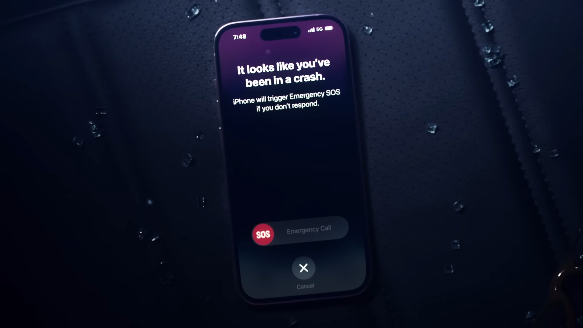 Con un nuevo acelerómetro de doble núcleo capaz de detectar mediciones de fuerza G de hasta 256G y un nuevo giroscopio de alto rango dinámico, Crash Detection en el iPhone ahora puede detectar un accidente automovilístico grave y llamar automáticamente a los servicios de emergencia cuando un usuario está inconsciente o no puede llegar a su iPhone. Estas capacidades se basan en componentes existentes, como el barómetro, que ahora puede detectar cambios de presión en la cabina, el GPS para entrada adicional para cambios de velocidad y el micrófono, que puede reconocer ruidos fuertes típicos de accidentes automovilísticos severos. Los algoritmos de movimiento avanzados diseñados por Apple entrenados con más de un millón de horas de conducción en el mundo real y datos de registro de accidentes brindan una precisión aún mayor. Cuando se combina con Apple Watch, Crash Detection aprovecha a la perfección la fortaleza única de ambos dispositivos para ayudar a los usuarios de manera eficiente. Cuando se detecta un bloqueo grave, la interfaz de llamada de los servicios de emergencia aparecerá en el Apple Watch, ya que lo más probable es que esté más cerca del usuario, mientras que la llamada se realiza a través del iPhone si está dentro del alcance para obtener la mejor conexión posible.