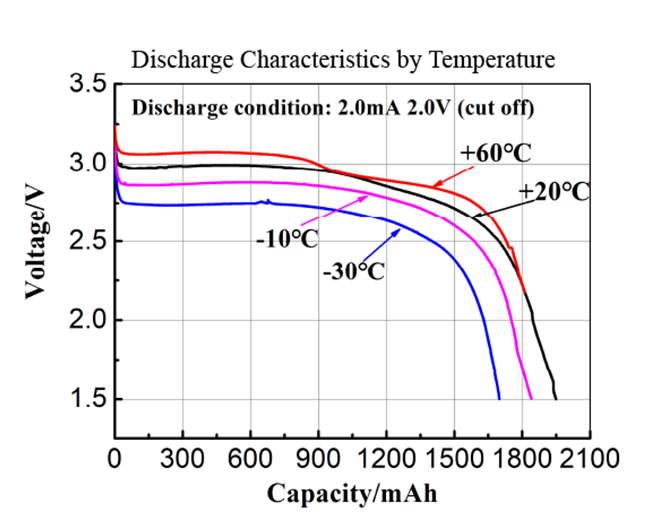La tasa anual de autodescarga de una celda CR2/3AL, medida por microcalorímetro, fue inferior al 1 % a 25 ℃. La tasa de autodescarga anual ultrabaja puede garantizar efectivamente una larga duración de la batería.