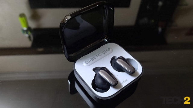 Crédito de la imagen: Tech2 | Ameya Dalvi Si bien se supone que las aletas brindan un mejor agarre, creo que las de aquí son más por estética. La razón es que las aletas no tocaron ninguna parte del lóbulo de mi oreja incluso después de girar un poco los botones. Entonces, si bien el ajuste en la oreja es extremadamente cómodo, no es lo suficientemente ajustado. Me encontré ajustando los botones un par de veces durante un trote solo para asegurarme de que no se salieran por completo, pero permanecieron en su lugar durante las caminatas normales. Sobre el tema de los entrenamientos, puede usar Buds Air 3S durante sus entrenamientos, ya que son resistentes a las salpicaduras con clasificación IPX5. Si bien el diseño de los botones se siente como una mejora con respecto a la mayoría de sus hermanos, es exactamente lo contrario para el estuche de carga. Desde el exterior, el estuche parece una caja de plástico sin brillo con una tapa transparente y una mitad inferior claramente pegajosa con un acabado mate. Es bastante voluminoso y no exactamente de bolsillo. La tapa es un imán de manchas y arañazos nada más sacarla de la caja. Sin embargo, el acabado es significativamente mejor en el interior una vez que abre la tapa. Parece que el estuche fue diseñado por dos personas diferentes.