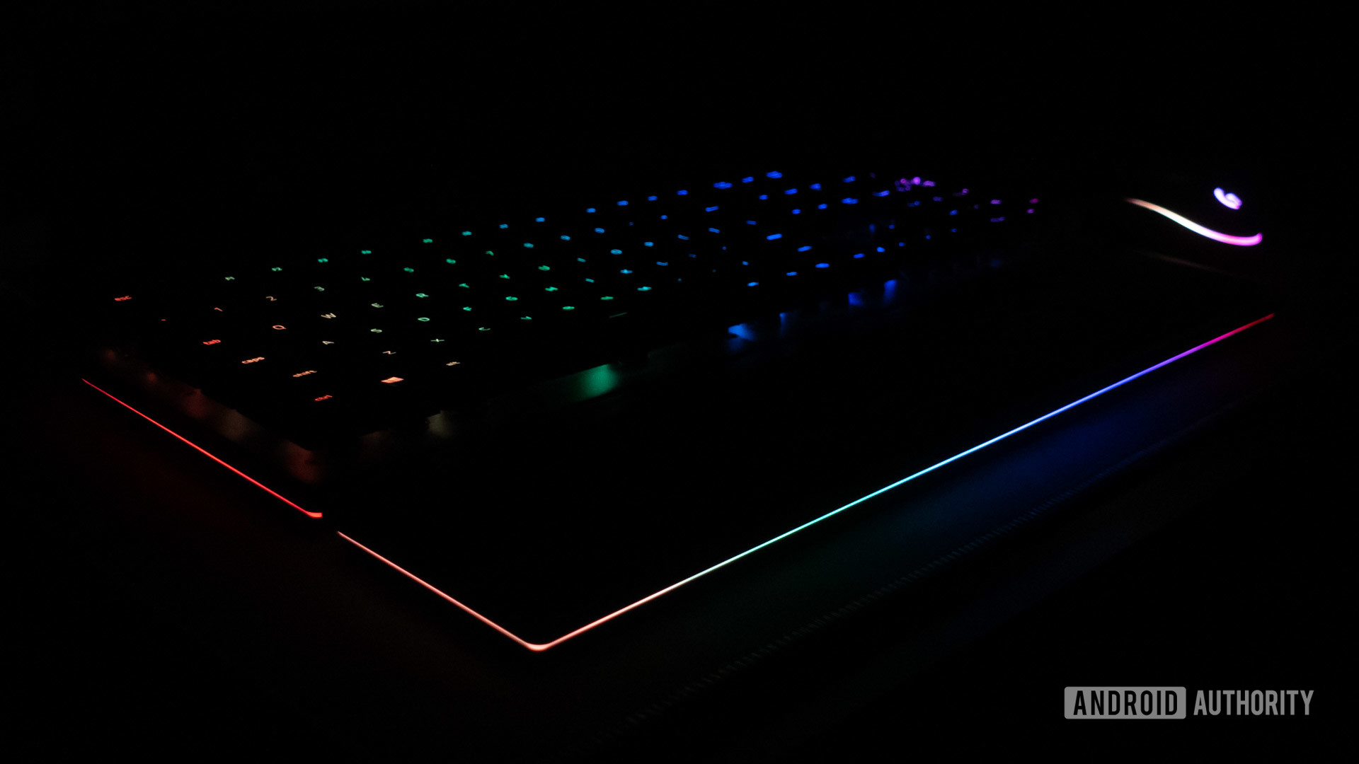 Calvin Wankhede / Android AuthorityChroma Connect sincroniza algunos efectos del juego con la iluminación de su teclado. La mayoría de las partes de la computadora enfocadas en juegos en estos días, incluso los monitores, vienen cubiertas con iluminación RGB por todas partes. El Huntsman Elite no es una excepción, con retroiluminación por tecla y un resplandor que se extiende alrededor del perímetro del teclado y el reposamuñecas. Este último usa pines magnéticos para extraer energía del teclado, muy posiblemente la definición de exceso. Necesario o no, Razer clavó la ejecución aquí. Todas las fuentes de luz del teclado brillan intensamente, sin puntos débiles ni variaciones de color. El control de iluminación a través de la aplicación complementaria Synapse también es extenso, con casi una docena de efectos preestablecidos y la capacidad de sincronizar animaciones personalizadas con otros periféricos de Razer. Otra característica interesante relacionada con la iluminación es la integración del juego Chroma de Razer, que cambia la iluminación en función de acciones del juego. En Apex Legends, por ejemplo, las luces se volverán rojas cuando recibas daño, azules cuando recargues tus escudos y se animarán cuando estés en el aire. La característica funciona bien, como se muestra arriba, pero no funciona en todos los juegos. También admito que no lo notas la mayor parte del tiempo. ¿Quién pensaría en mirar su teclado en medio de un intenso tiroteo de todos modos? El software de Razer te permite sincronizar los efectos del juego no solo con el teclado y el mouse, sino también con las luces Philips Hue y Nanoleaf. Dicho esto, la función Chroma Connect de Razer te permite sincronizar efectos de iluminación con plataformas de hardware de terceros como Philips Hue y Nanoleaf. Puedo ver cómo los efectos del juego podrían aumentar la inmersión si colocas estratégicamente luces compatibles alrededor o detrás de tu monitor. El video promocional de Razer muestra este efecto bastante bien. Volviendo al teclado en sí, los excelentes efectos de iluminación tienen un costo. El Huntsman Elite requiere dos puertos USB-A, lo que también hace que el cable conectado permanentemente sea grueso y difícil de maniobrar. Si tiene una PC para juegos de factor de forma pequeño (SFF) o una computadora portátil para juegos acoplada en su escritorio, es posible que no quiera renunciar a sus puertos limitados por una iluminación tenue. El teclado tampoco tiene transferencia USB para aliviar el dolor.