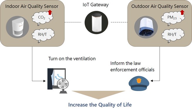 Con la cooperación interministerial del Gobierno, el Departamento de Tecnología Industrial encargó al Instituto de Investigación de Tecnología Industrial (ITRI) que desarrollara componentes de detección de IoT ambiental. Después de pasar las pruebas realizadas por el laboratorio nacional, la tecnología se transfirió a empresas privadas para la producción en masa. El microsensor de calidad del aire doméstico tiene una larga vida útil en un entorno húmedo y de alta temperatura. También agrega compensación y corrección de parámetros de temperatura y humedad, lo que no solo mejora la precisión, sino que también satisface las necesidades locales. Utilizando las ventajas de la fabricación de productos electrónicos de Taiwán junto con los fabricantes de equipos de detección, fabricantes de equipos de red, etc., brinda a los clientes nacionales y extranjeros soluciones para monitorear la calidad del aire, tanto en interiores como en exteriores.