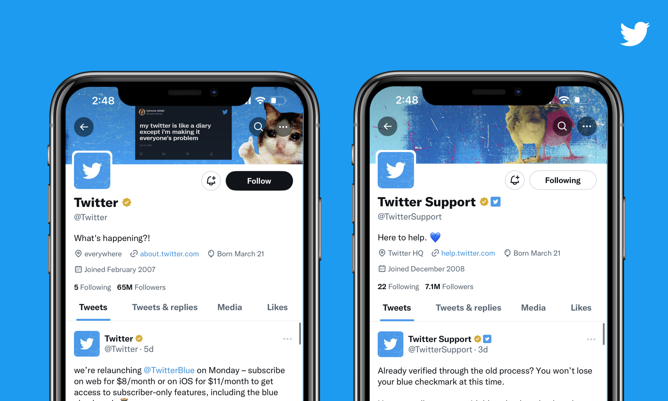 Twitter Blue for Business incluye nuevas insignias. Fuente de imagen: Gorjeo