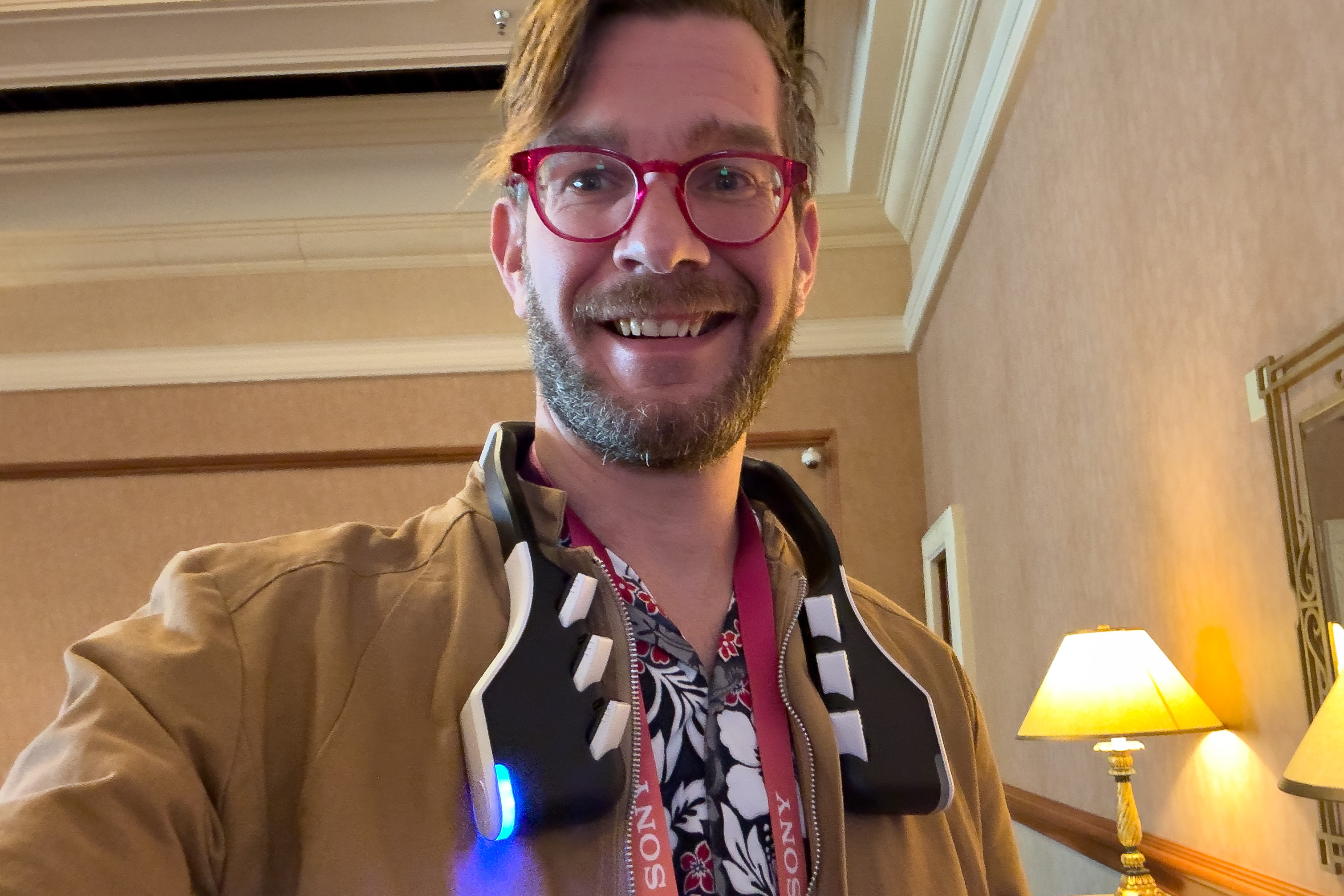 Este es el momento exacto en que su corresponsal fue rociado con aroma a toronja. Credito de imagen: Haje Kamps / TechCrunch tuvimos la oportunidad de probarlo. Los olores disponibles se entregan nítidamente y son notablemente reconocibles. Pomelo fresco, el humo crepitante de una fogata, pan recién horneado, caucho quemado, y cuando se sincroniza con el video, los olores ayudan a que las imágenes cobren vida. La tecnología se usó inicialmente en aplicaciones de señalización digital de alta gama, con un dispensador que puede arrojar olores desde una distancia de hasta 6 pies, pero la compañía mostró hoy herramientas para que cualquiera pueda crear su propio contenido y experiencias aromáticas: una demostración es disponible en AromaPlayer.com. El dispositivo que se lleva en el cuello es mucho más específico que su producto enfocado comercialmente y no se puede percibir a más de un pie de distancia del espectador. “Nuestra tecnología brinda un olor controlable, y con Aromashooter, puedes elegir la dirección de los aromas. Se pueden sincronizar con una precisión de 0,1 segundos y se sincronizan con música o videos”, dice Dong Wook Kim, CEO de Aromajoin en una entrevista con TechCrunch en CES, y agrega que la compañía tiene más de 25 patentes sobre la tecnología.