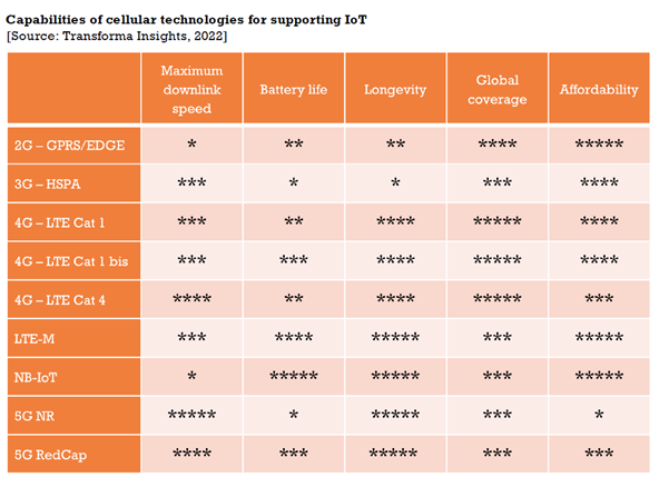 Las capacidades de las diferentes tecnologías de conectividad celular varían significativamente, lo que las empresas inevitablemente querrán considerar al elegir su ruta de actualización.